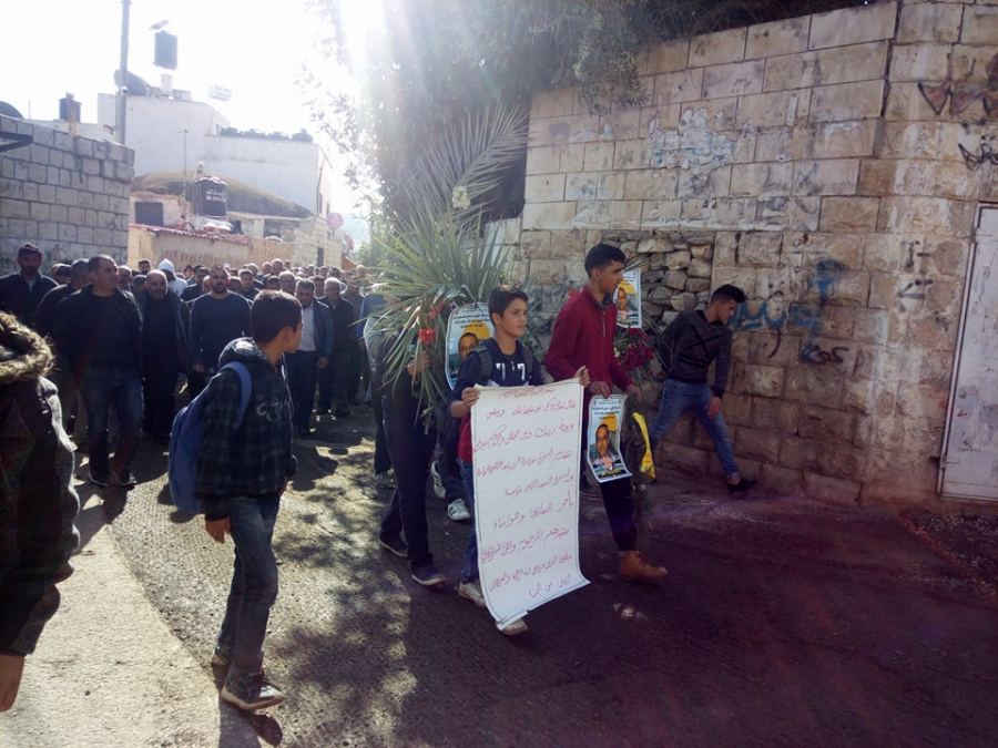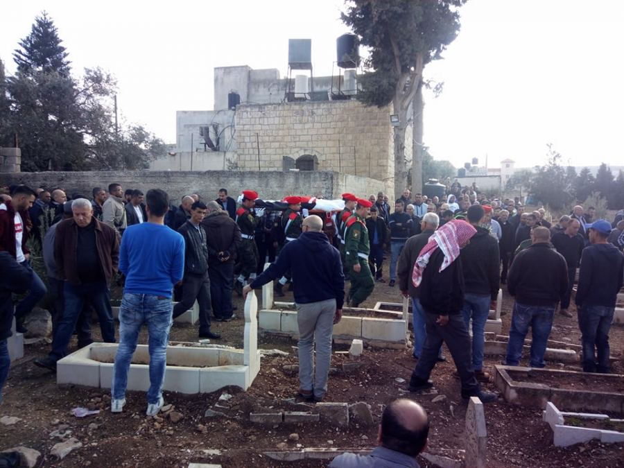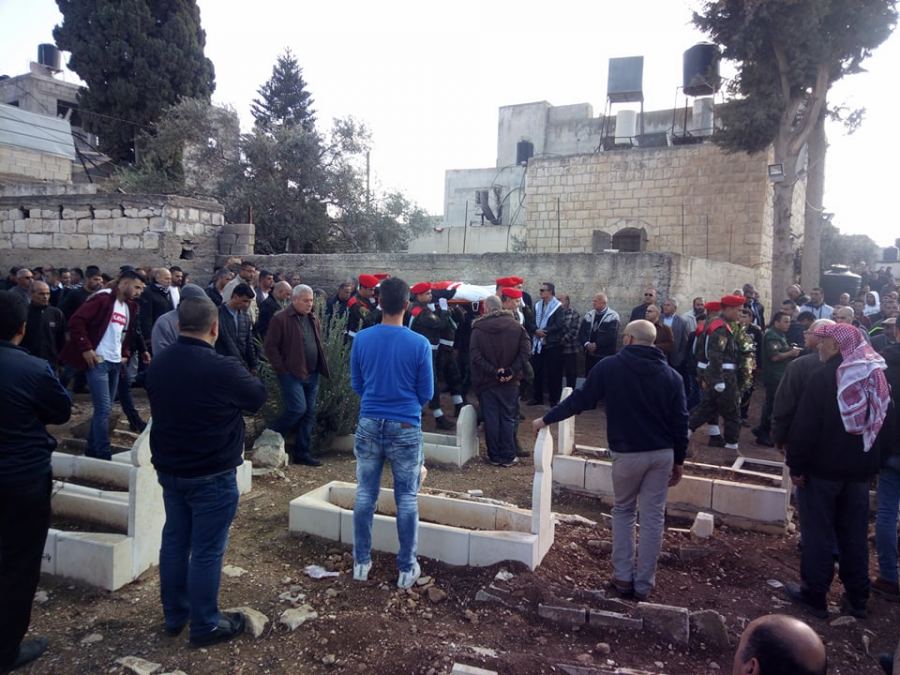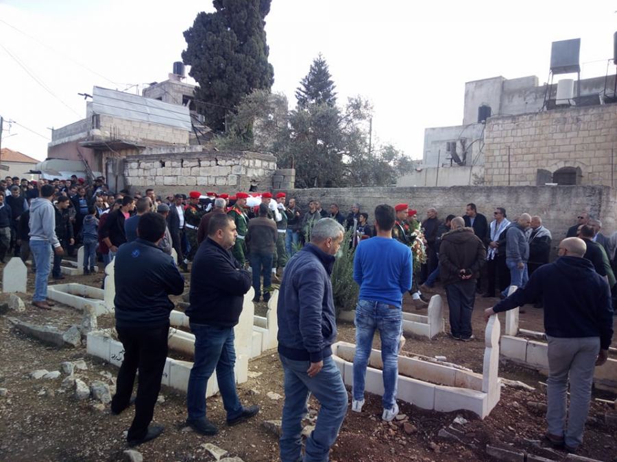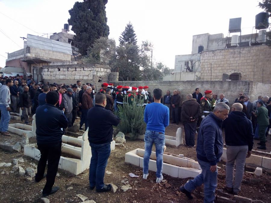 وكانت انطلقت مسيرة الجنازة من مسجد عبد الله بن رواحة على الشارع الرئيس للبلدة الى مقبرة البلدة تقدمها حملة اكاليل الزهور وثلة من حرس الشرف بمشاركة ابناء البلدة والبلدات المجاورة والاجهزة الامنية والجامعة العربية الامريكية وممثلين الفعاليات المختلفة.