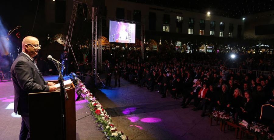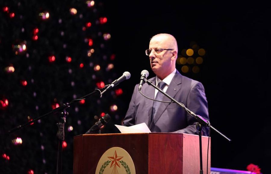 واستطرد رئيس الوزراء: “نلتقي اليوم، في خضم واقع مرير وصعب، لنصنع لأنفسنا مساحة للفرح والتفاؤل، فإسرائيل ماضية في تقويض أية جهود لإحياء عملية السلام، فهي تشدد حصارها الخانق على قطاع غزة، وتحاصر مسافر يطا وسوسيا والخان الأحمر وجبل البابا وعين الحلوة وأم الجمال، وسائر المناطق المسماة (ج)، وتهدم فيها البيوت والمنشآت، وترهب أهلها بإخطارات الهدم وبمخططات التهجير القسري، وتصادر حق أطفالنا في حياة طبيعية آمنة في غزة والأغوار وفي القدس والخليل، وتحتجز حرية حوالي ستة آلاف وثلاثمائة أسير فلسطيني في سجونها ومعتقلاتها، بينهم نحو ثلاثمائة طفل وقاصر. يأتي هذا في وقت تشرع فيه القوانين المخالفة للقانون الدولي، وتطلق العنان لجيشها ومستوطنيها لاستباحة أرضنا والاستمرار بأنتهاكاتها، والتي كان آخرها قتل المواطن محمود عودة بدم بارد، وهو يفلح أرضه ببلدة قصرة في نابلس”.