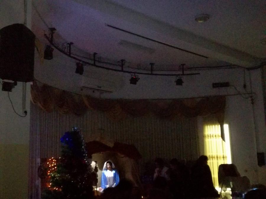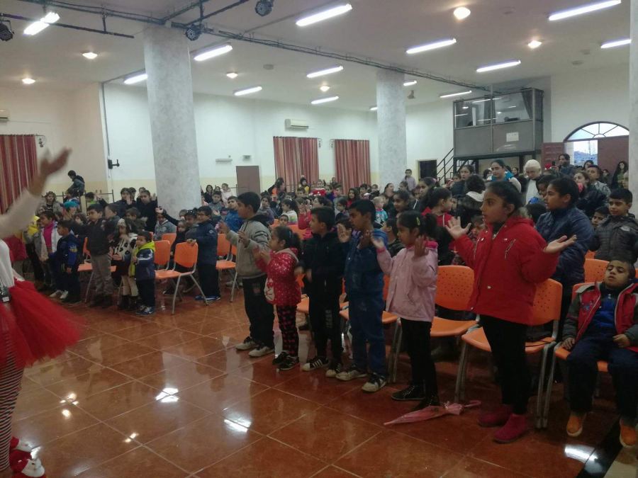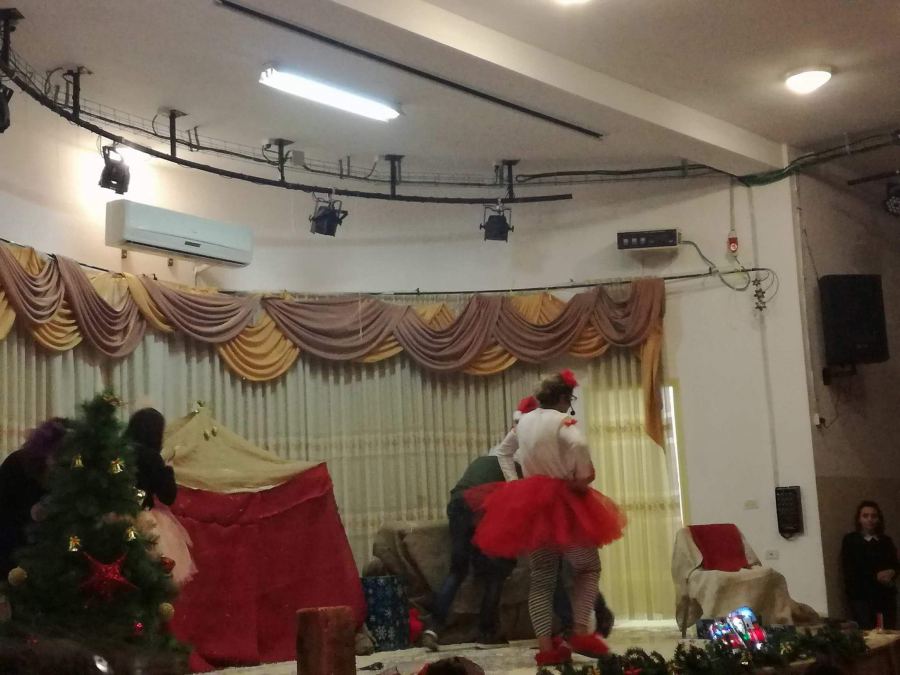 وكان لفرقة جمعية الكتاب المقدس المسرحية عرضها المميز و الذي بدأ بالرقص مع الأطفال على أنغام ترانيم العيد، ثم العرض المسرحي الهادف والذي أرسلت من خلاله الفرقه رسالة مُبسطة للأطفال ب ضرورة التمسك بْ جوهر العيد وهو ولادة الطفل يسوع ومن ثم الإهتمام بالشكليات من الزينة و الإحتفالات و الهدايا ، ومن هنا علينا جميعا الإستعداد لإستقبال طفل المغارة بقلب مُحب و مُسامح.