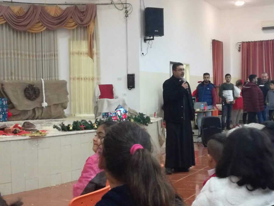 ثم كلمه للآب فراس ذياب إستهلها بالصلاة مع الأطفال و سرد معاني الميلاد المجيد و إستذكار قصة الميلاد معهم ب أسلوب بسيط قريب لقلوبهم الصغيرة .