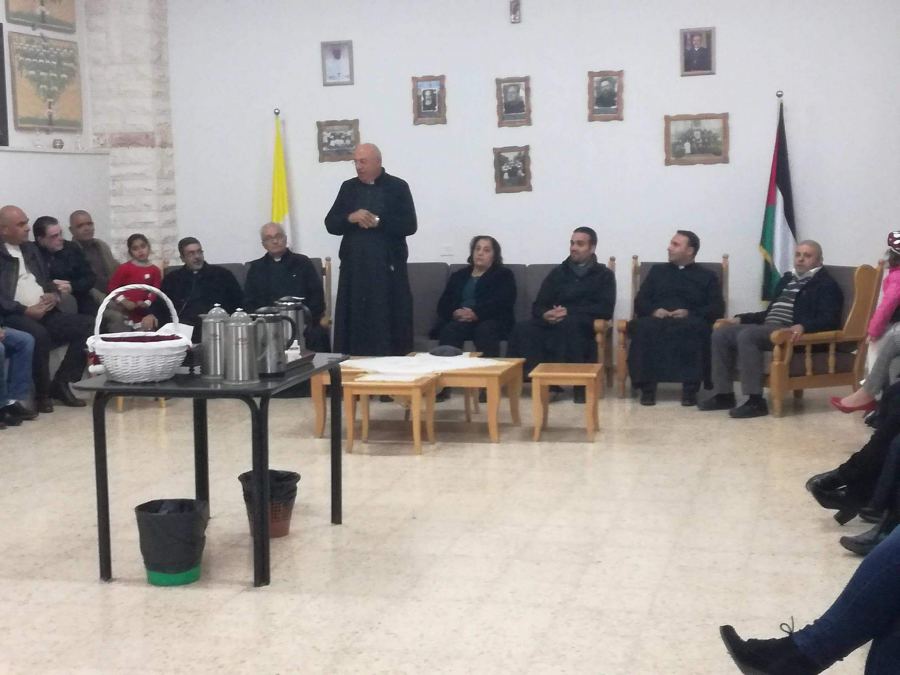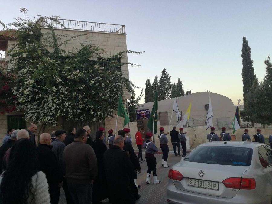 إفتتح الإحتفال الأب إبراهيم نينو راعي كنيسة اللاتين في البلدة بالكلمة الترحيبية، و دعوة الجميع لفتح قلوبهم لإستقبال طفل المغارة ب تسامح ونقاء، كما و أعرب عن إستنكاره تصريحات ترامب بشأن مدينة القدس مؤكداً على أنها لم ولن تلُغي هوية القدس العربية الفلسطينية ولن تؤثر على صمود شعبنا و تعلقه بأرضه وقًدسه عاصمته الأبدية، و نوه لإقتصار الإحتفال على إفتتاح صامت للبازار مع موكب رجال الدين وسرية الكشافة وأبناء البلدة وذلك تضامنا مع أبناء شعبنا، كما وسيتم إطفاء شجرة الميلاد على نهج شجرتي المهد و رام الله.