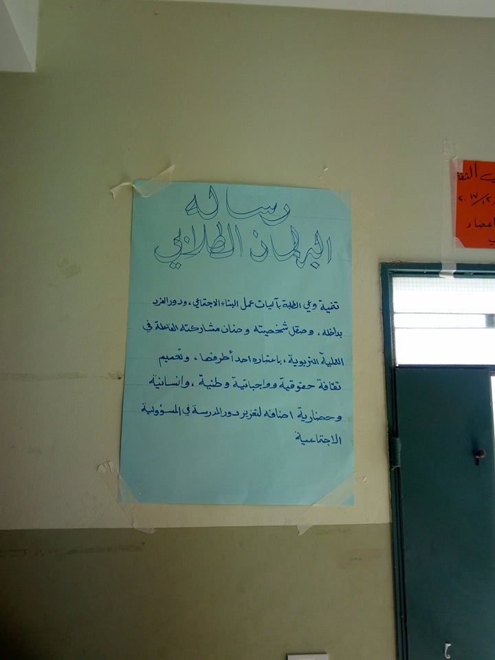 وتمحور ترشيح الطلبة خلال لقاء عدد من المرشحين وهم كاتبا عبد الله وليان خالد ومصطفى ارشيد وجمال دعيبس من المدرسة على تقدمهم للترشيح من اجل تطور المدرسة وان يكونوا صوت الطالب لدى الإدارة ونقل احتياجات الطلبة وحل مشاكلهم مؤكدين أن ترشحهم جاء بعد دعم الطلبة لتوجههم وتشجيعهم لحمل الهم الطلابي دون أن يكون رفع لسقف التوقعات كثيرا من هذا الترشح علما أنها تجربة جديدة لهم تشجعهم على الاستمرار في العمل الديمقراطي الوطني العام.