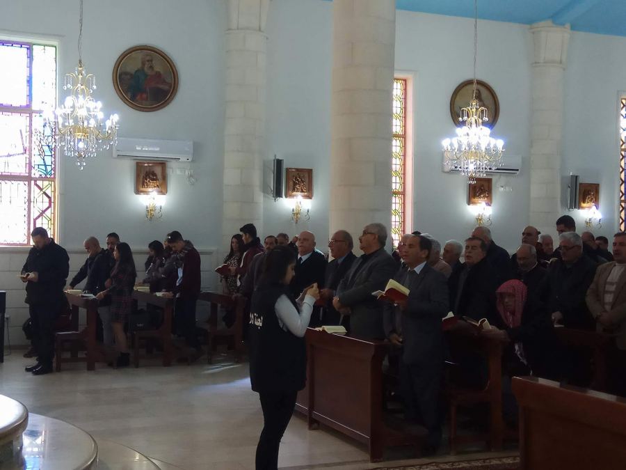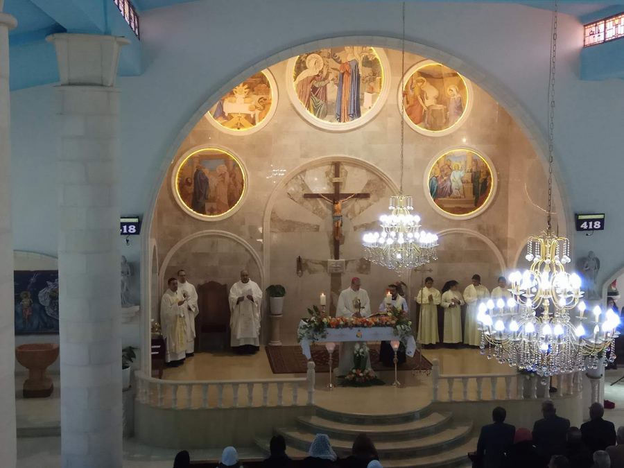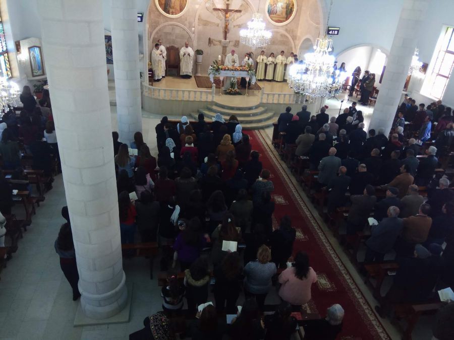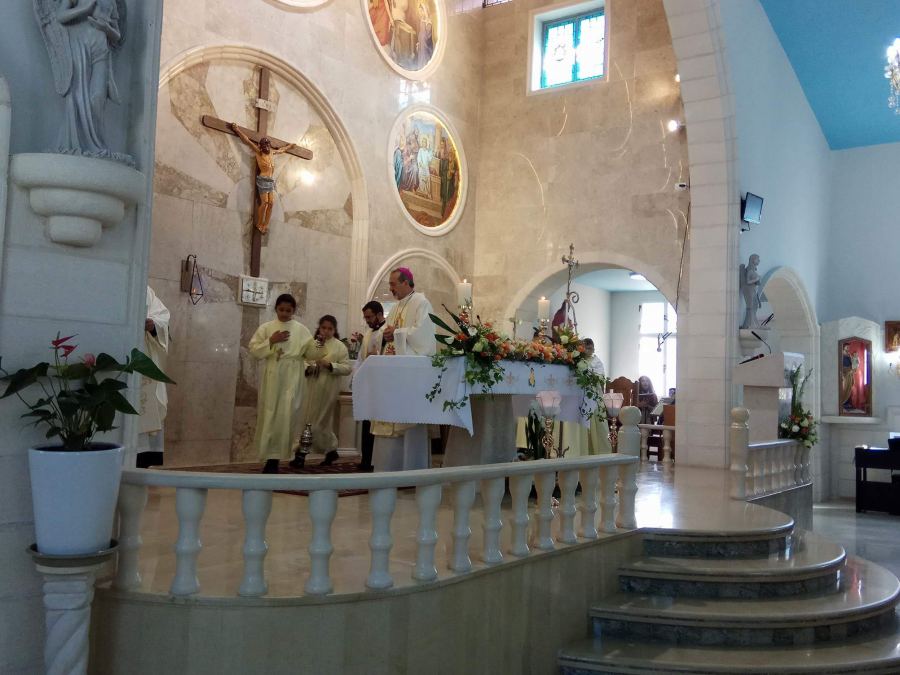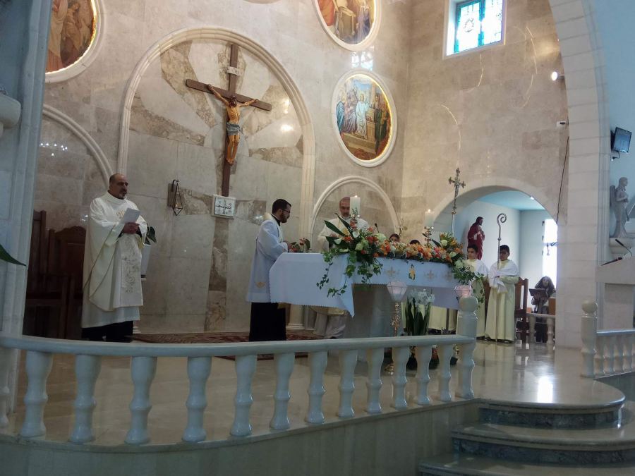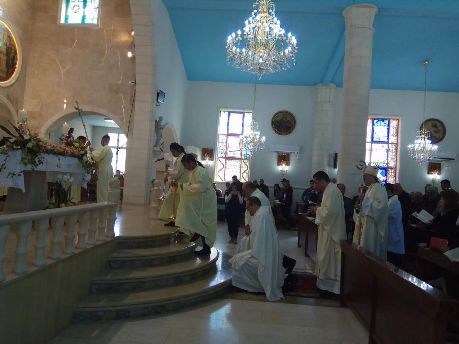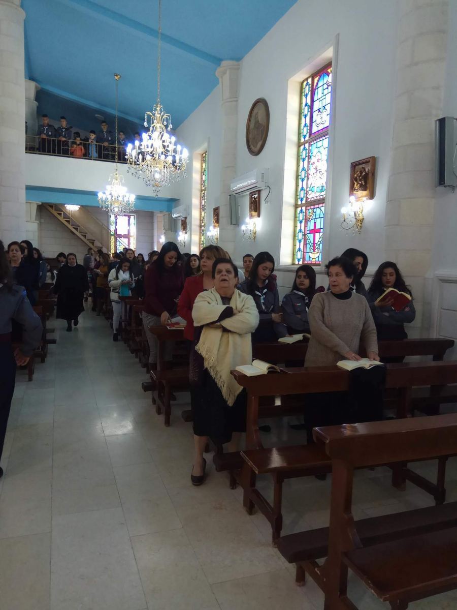 وكان للمدبر الرسولي إستقبال كنسي حافل بحضور المجموعات الكشفية في البلدة، و أبنائها ، إنطلق من وسط البلد الي كنيسة سيدة الزيارة للاتين حيث تم الاحتفال بوجود سيادته بالقداس الإلهي ب عيد دخول يسوع للهيكل والذي يصادف اليوم الأربعين بعد الميلاد المجيد.