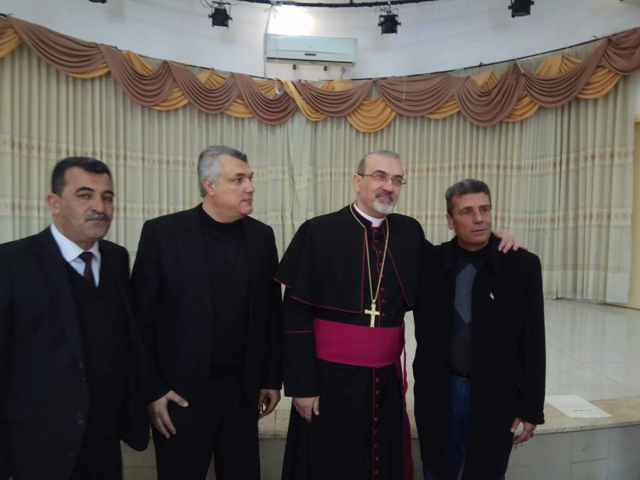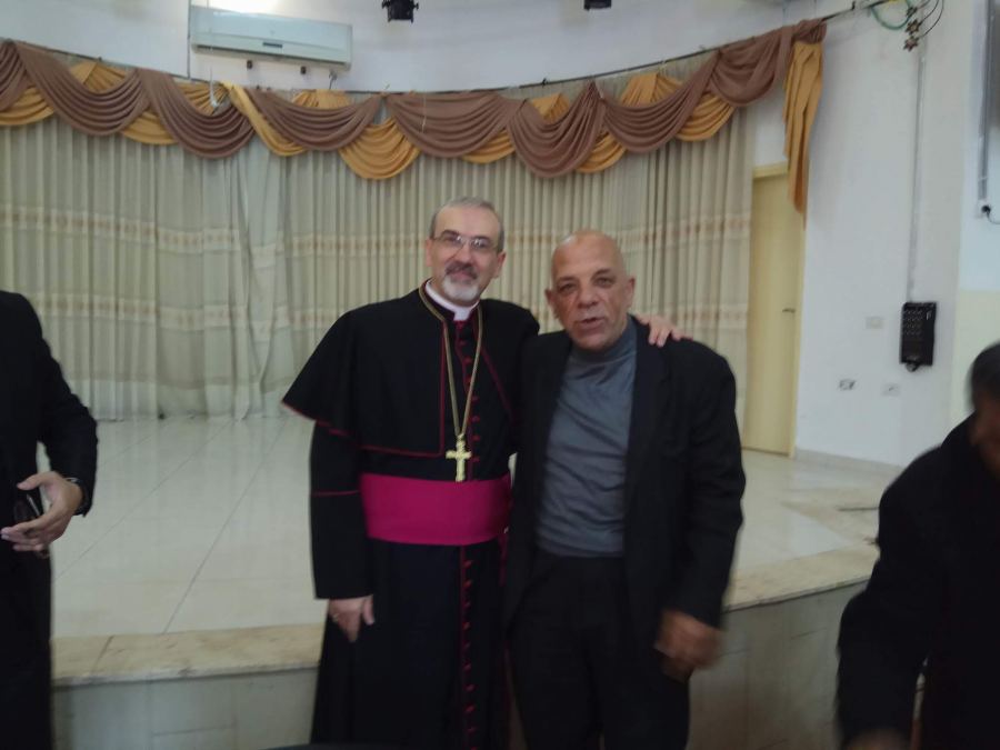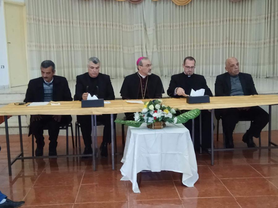 وكان للمدبر الرسولي بيير باتيستا بيتسابالا جزيل الوقار كلمته والتي جاء فيها بعد الترحيب بالجهات الرسمية و الشعبية : " إنها لمناسبة مباركة أن نلتقي اليوم على الخير والمحبة و التواصل، فكما أن هذا المجتمع الطيب بأصالته وعراقته لا يحمل في طياته إلا كل معاني المحبة لكل أبنائه، كذلك فإنه يشكل كافة النسيج الإجتماعي، في كل مدينة وحي وقرية عنواناً مهماً للتسامح والتعايش و قبول الٱخر، فبهذه المعاني نتجاوز الصعاب ونقفز فوق كل الصغائر.