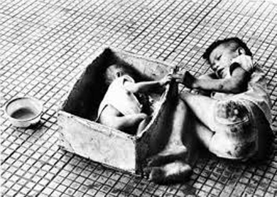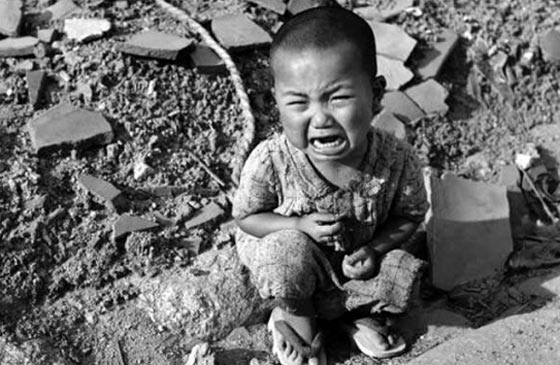 7 - ضحية القنبلة الذرية عام 1945: وجدت صورة الطفلة اليابانية التي تبكي بعد 6 أيام من إلقاء الولايات المتحدة قنبلة ذرية على اليابان أثناء الحرب العالمية الثانية عام 1945، ردود فعل عالمية كبيرة وتعاطفا دوليا كبيرا مع مأساة المواطنين اليابانيين ضحايا القصف الأميركي.