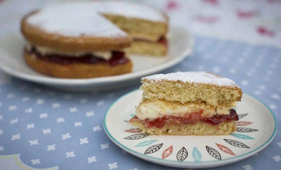 كعكة فكتوريا: تعتبر هذه الكعكة الشريك المثالي لكوب شاي ما بعد الظهيرة، وهي عبارة عن كعكة إسفنجية تتوسطها المربى والكريما