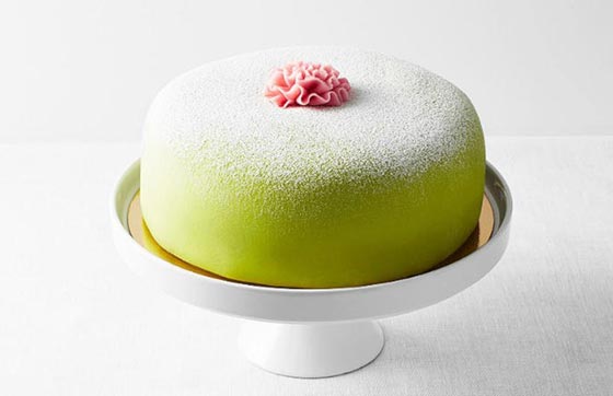كعكة الأميرة السويدية: تتكون هذه الكعكة من كعك إسفنجي ومربى وكاسترد وكريما مخفوقة مغطاة بالمرصبان أو معجون اللوز