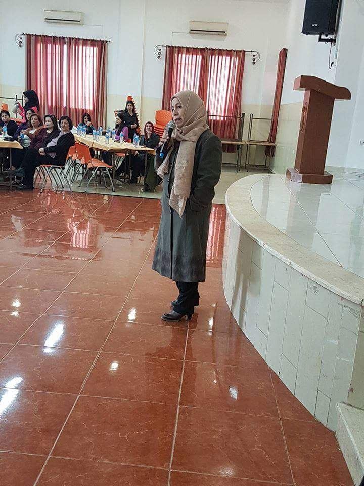 فيما أكدت فاطمة دراغمه من برنامج التأهيل المجتمعي على أهمية عمل برنامج التأهيل في المنطقة وحقوق أمهات أشخاص ذوي الاعاقه في المشاركة بالانشطه المجتمعية وحقوق أشخاص ذوي الإعاقة من الإناث خاصة وبعدها ألقت هيفاء دعيبس ذياب من الإغاثة الطبية الفلسطينية كلمه هنات المشاركات بيوم المرأة مقدمة نبذة مختصرة عن يوم المرأة.