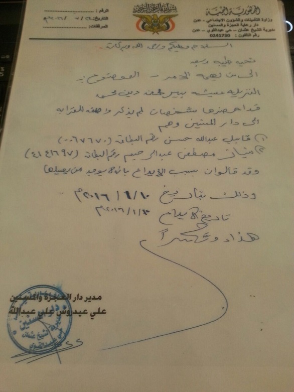 تقول الوثائق التي حصل عليها موقع 24 "إن عايشة بير نقلها نجلها قابيل عبدالله حسن إلى دار العجزة في الشيخ عثمان، في العاشرة من يناير (كانون الثاني) 2016، دون أن يبلغ الدار أنها والدته.