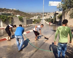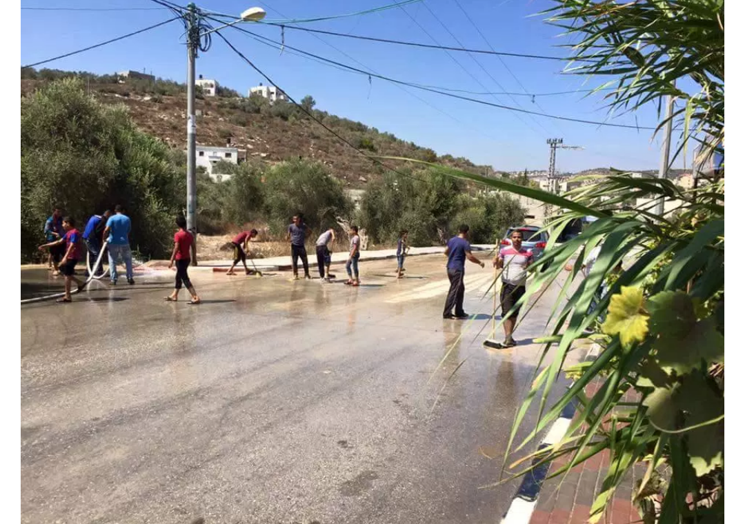 وانطلقت الفعالية من مدخل القرية “الشارع الرئيسي”، بمشاركة عشرات المتطوعين الذين حملوا مكانسهم وأدوات التنظيف، حيث قاموا بتنظيف وتجميل الشارع، ورشه بالمياه.