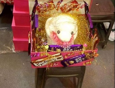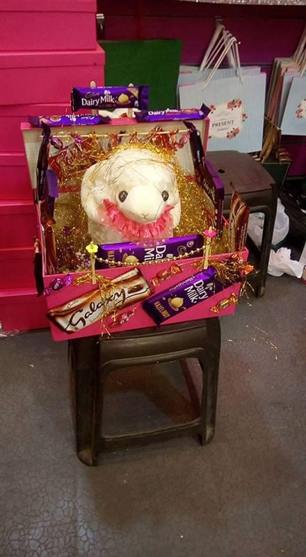 وأظهرت الصور التي التقطتها أحد الأشخاص داخل محل الهدايا صندوقا يوجد به دمية على شكل خروف والعديد من قوالب الشيكولاتة، ولم يكتف بذلك بل وضع ألف جنيه عيدية لحبيبته.
