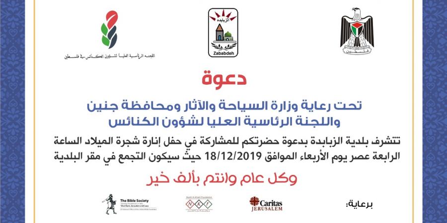 دعوة للتغطية لاحتفال انارة شجرة الميلاد صبا. نت calendar_month16/12/2019 11:06 visibility 1,110 مقالات ذات صلة share سلطة الأراضي ووزارة الاتصالات وبلدية رام الله يوقعون مذكرة تفاهمshare انطلاق "ماربيلا بيوتي" للمنتجات النسائية في فلسطين share المواصفات والمقاييس تعلن نتائج مسابقة زيت الزيتون الذهبي لعام 2025share "التربية" تفتتح مدرسة بنات كفر قدوم الأساسية في قلقيلية تزامناً مع بدء الفصل الدراسي الثاني