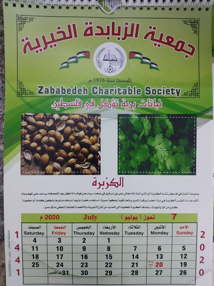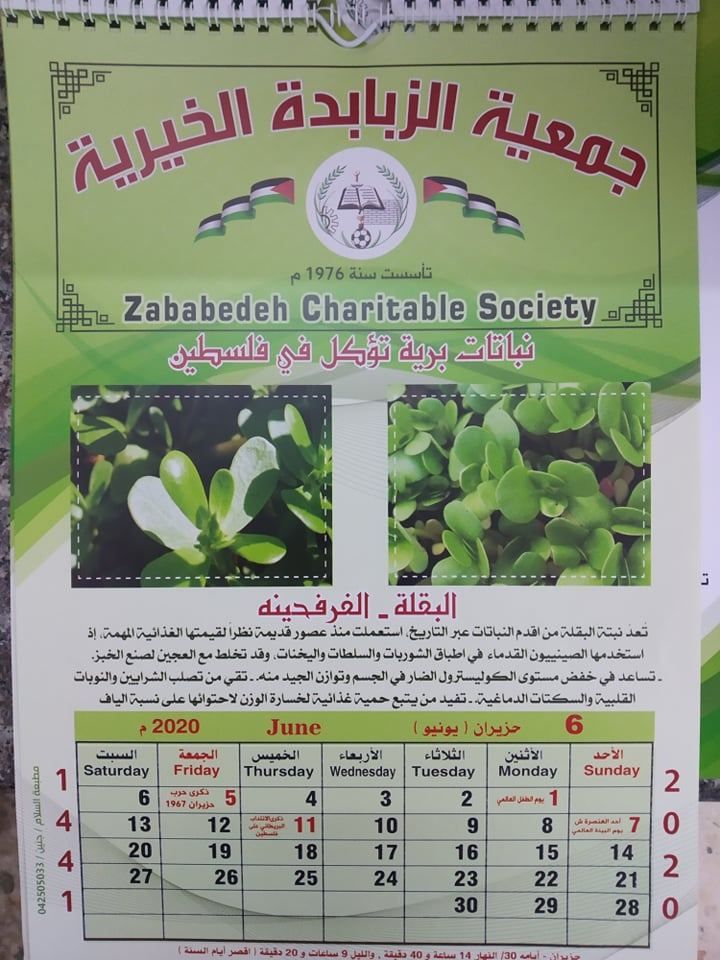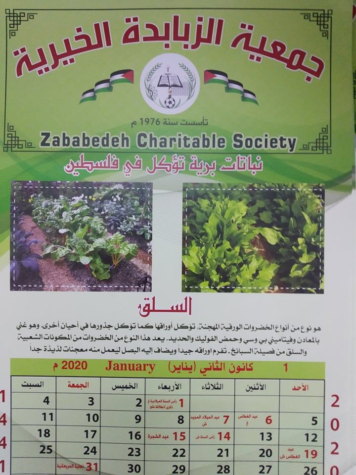 وقال عيسى عواد رئيس الهينة الإدارية للجمعية أن الجمعية في هذا العام عملت على إصدار تقويمها للعام 2020 حيث عمدت على الاهتمام بالبيئة الفلسطينية وعملت على تعريف المتابعين لتقويمها بهذا العام على مجموعة من النباتات البرية التي تؤكل في فلسطين بهدف المحافظة على البيئة وحماية الطبيعة.