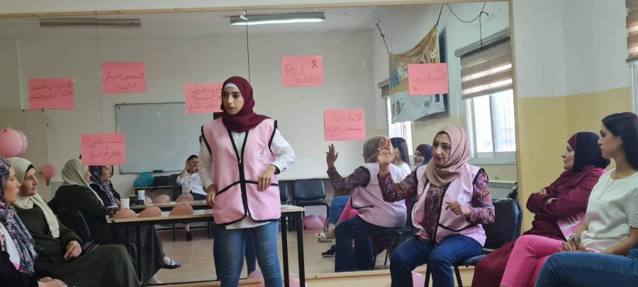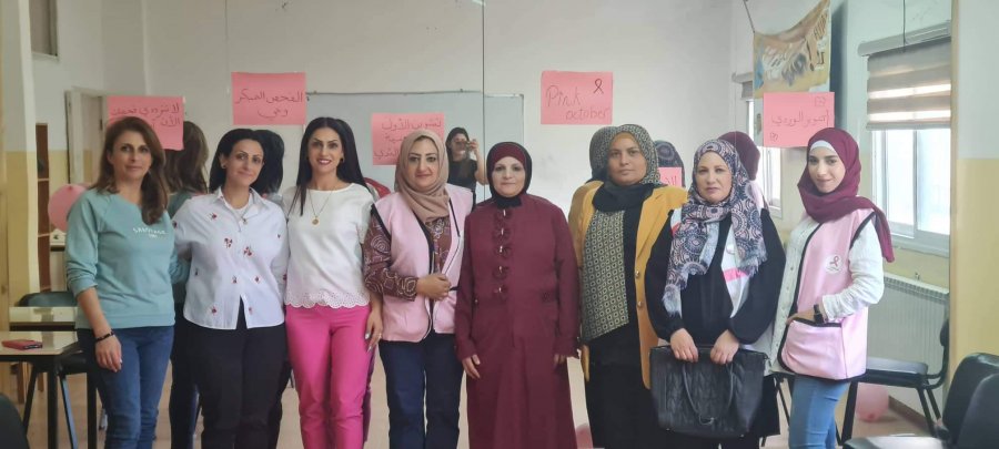 وقد قدمت موظفة الاغاثة الطبية محاضرة توعوية للسيدات عن اهمية الفحص المبكر للسرطان المتمثلة بالفحص الذاتي اولا ثم الميموغرام للكشف عن اي تغيرات في الثدي لما له من أهمية كبيرة في زيادة فرصة الشفاء بحال ثبوت الاصابة بالمرض و ضرورة تخطي حاجز الخوف من الخضوع للفحوصات وهذا ما اكدت عليه مرشدة مدرسة البطريركية اللاتينية السيدة روان ابراهيم المنظمة للقاء بالتعاون مع الجهات الأخرى واضافت على ان المدرسة تحرص سنوياً على اقامة اللقاء التوعوي لسرطان الثدي، و اوضحت على حرصها لهذا العام التعاون مع البلدية لضمان حضور اكبر نظراً للاقبال الضعيف من السيدات في السنوات الماضية.