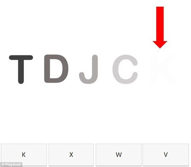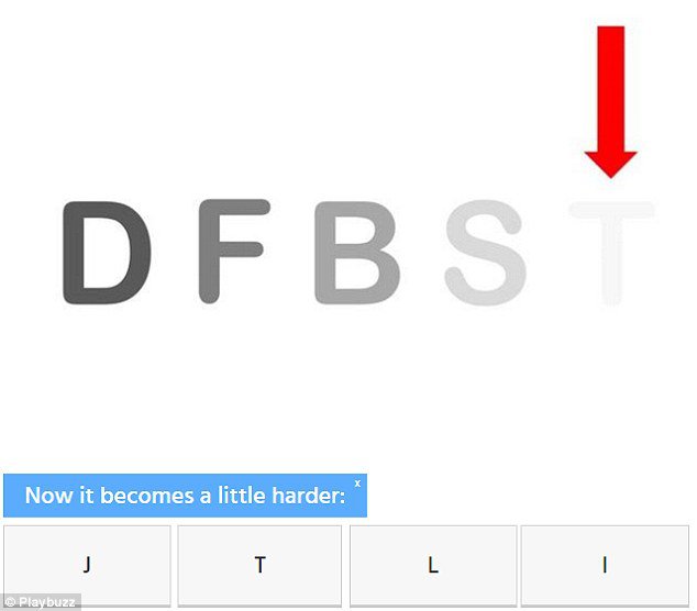 الاختبار هو عبارة عن صورٍ تتضمّن 5 أشكال أو حروف أو أرقام، وعلى الزوار أن يحاولوا التعرّف على الحرف الخامس منها وغير المرئي.
