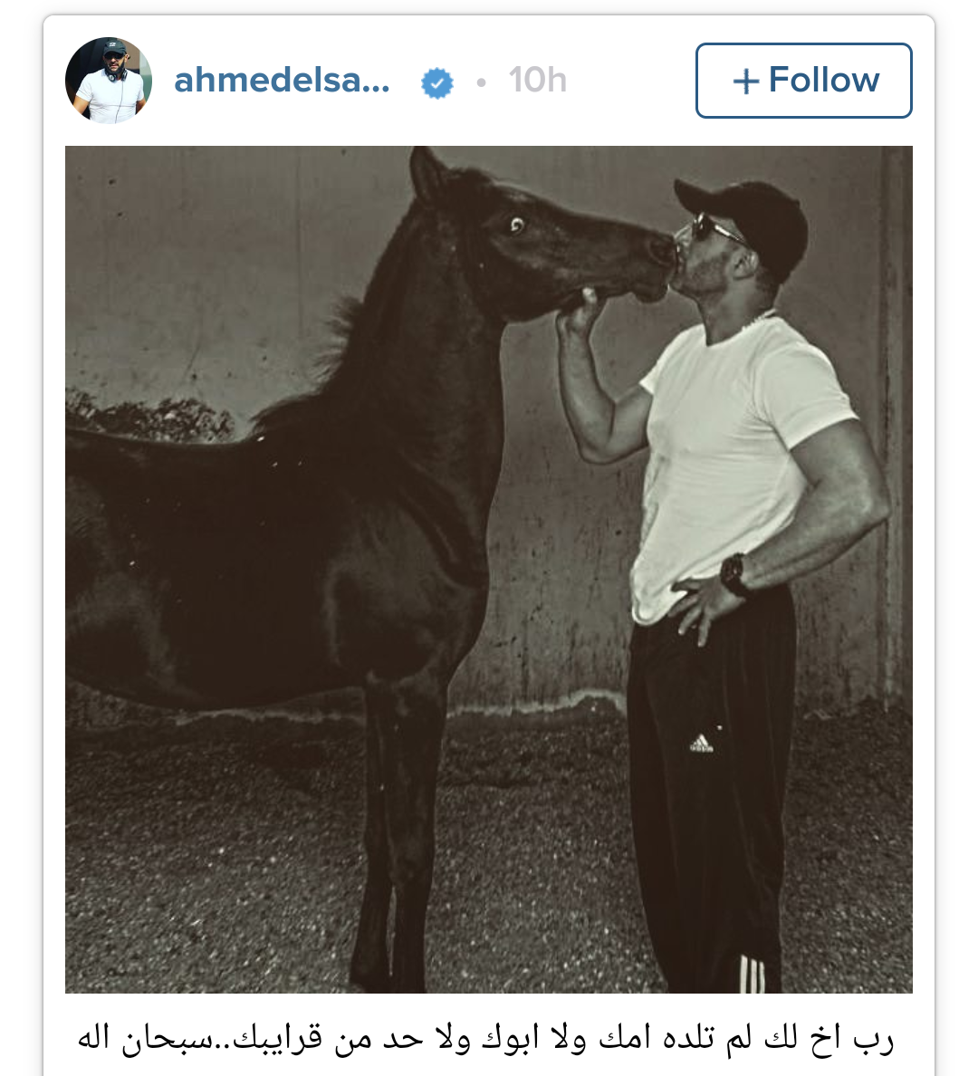 صبا.نت- أثارت صورة غريبة كان قد نشرها الفنان المصري أحمد السقا عبر حسابه الشخصي على موقع "إنستغرام"، ضجة كبيرة عبر مواقع التواصل الاجتماعي، حيث ظهر برفقة حصان وهو يقبله من فمه.