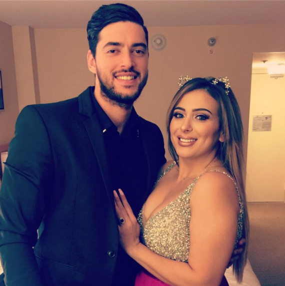 وفي الصورة، ظهرت يوسف مرتدية فستاناً مثيراً، وتقف بين أحضان حبيبها.