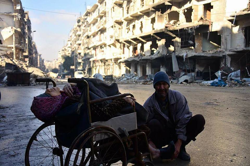 وكانت الصورة للمسنة الحلبية "صباح محمد"، التي عجز زوجها عن العثور لها على طبيب واحد أو مستشفى صغير في شوارع حلب المنكوبة.