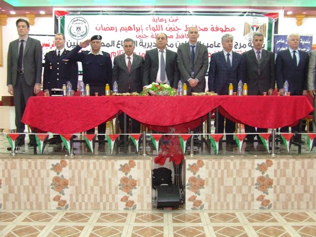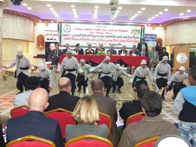 جنين - صبا اف ام. نت - تحت رعاية محافظ محافظة جنين اللواء ابراهيم رمضان و بتوجيهات قائد منطقة جنين و طوباس العقيد ركن محمد أبو هيفاء شارك مكتب العلاقات العامة و الإعلام بقوات الأمن الوطني في حفل افتتاح مركز الدفاع المدني و استلام مركبة إطفاء و ذلك في القاعة الملكية.