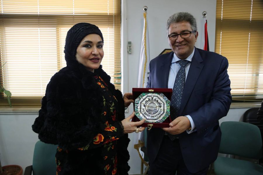 وقد رحب أ.د عماد أبو كشك بهذه الزيارة والتي أكد على أهميتها لفلسطين والقدس بشكل خاص ، مقدماً شرحاً عن تأسيس الجامعة والبرامج التي تميزت بها على مستوى الوطن والشرق الأوسط .
