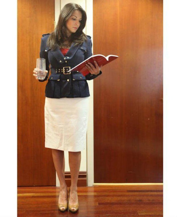 وقد تم منعها من ارتداء الأحذية ذات الكعب العالي والملابس الضيقة التي تظهر مفاتنها، بالرغم من ان الموظفات الأخريات يرتدين نفس الملابس.