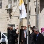 جنين-صبا.نت- رفع محافظ جنين اللواء إبراهيم رمضان، اليوم الأحد، علم دولة الفاتيكان في ساحة المحافظة .
