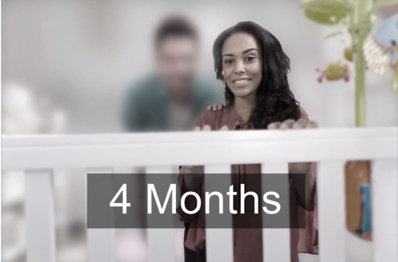 وقبل انقضاء مدة 4 أشهر، بالكاد يمكن للرضيع أن يرى أشياء تبعد عنه بـ10 بوصات، وكما قد يتنبه له كثير من الآباء والأمهات فإن التنسيق بين اليد والعين سوف يحدث بعد حوالي 4 أشهر.