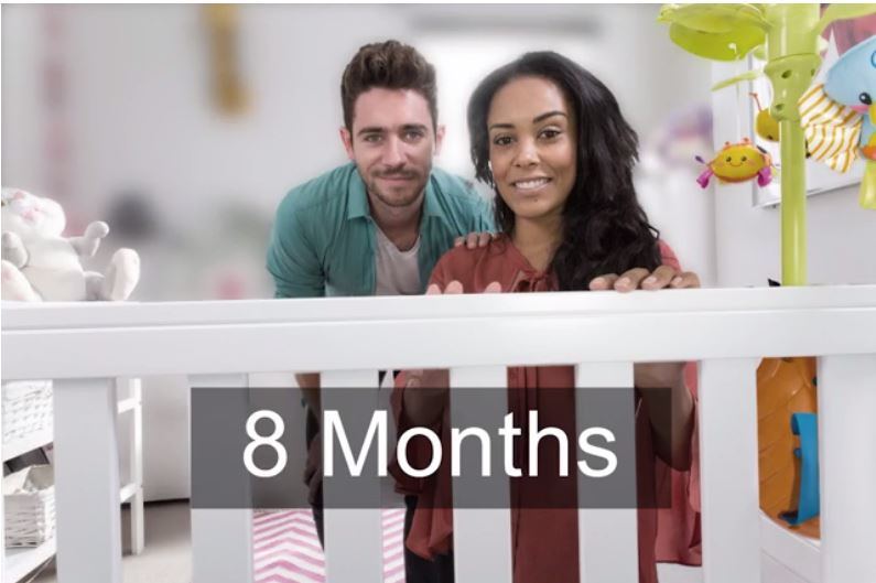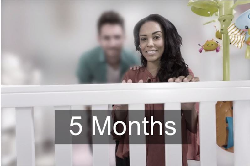 وفي الوقت الذي يبدأ فيه الرضيع الزحف عند سن 9 أشهر، يبدأ التنسيق بين اليد والعين في التحسن، ويمكن للرضيع - عن وعي - أن يجذب أشياء معينة، بدلاً من أن يصل إليها بالصدفة.