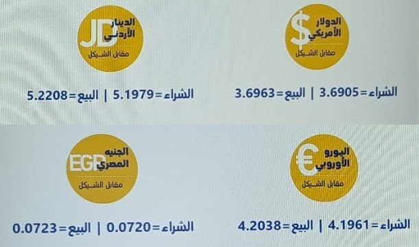 أسعار صرف العملات صبا.نت - جاءت أسعار صرف العملات مقابل الشيقل، اليوم الإثنين، بحسب سلطة النقد الفلسطينية، على النحو التالي: calendar_month14/04/2025 11:40 visibility 398 مقالات ذات صلة share سموتريتش يعلن: لن يتم تحويل أموال المقاصة للسلطة هذا الشهر أيضاshare الاحتلال يعتقل شابين ويغلق مداخل بلدة الرام شمال القدسshare الاحتلال يعتقل شابين من مدينة طولكرمshare مستعمرون يطلقون الرصاص الحي على مواطنين في بيت ساحور