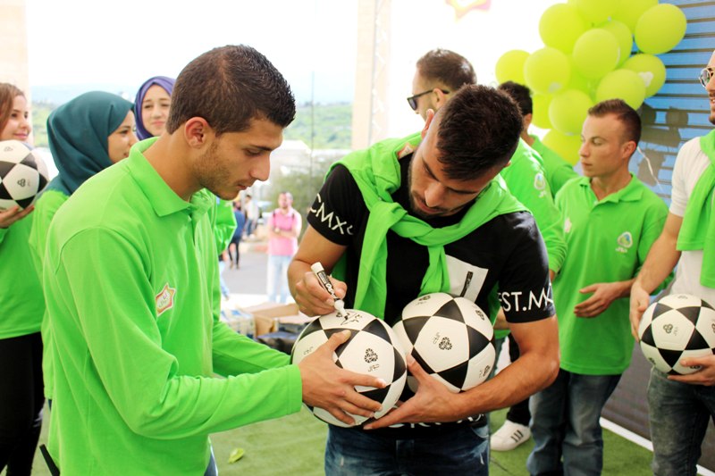 واستضاف الحفل، مجموعة من لاعبي المنتخب الفدائي،والذين تحدثوا عن قصص نجاحهم ومشاركاتهم الدولية والعربية، ووزعوا كرات القدم على الطلبة مع التوقيع عليها، وشاركوا في فقرات الحفل الفنية والمسابقات، والتعريف بعروض جوال، وبعض العروض للمواهب الشابة.