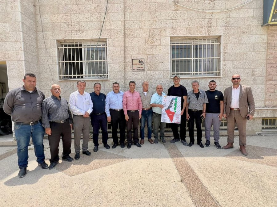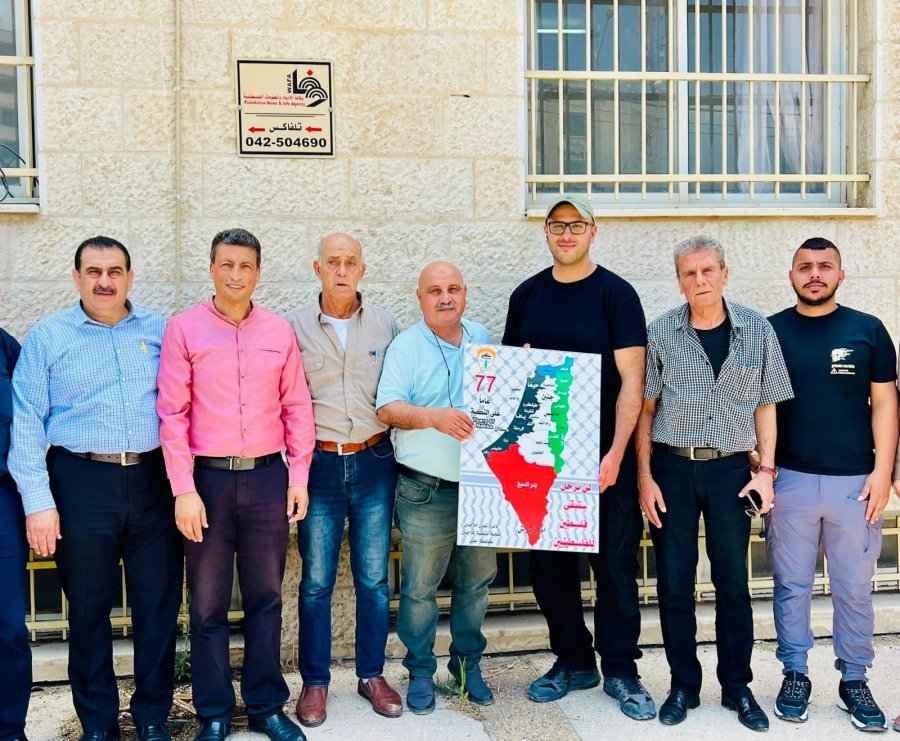 قام ممثلين عن اللجنة الشعبية للاجئين في محافظة جنين وحركة فتح اقليم جنين و فصائل العمل الوطني بتوزيع خارطة فلسطين التاريخية على المؤسسات الوطنية " الغرفة التجارية - مؤسسة رعاية الش،هداء - اتحاد نقابات عمال فلسطين - وكالة الانباء الفلسطينية ( وفا ) " .