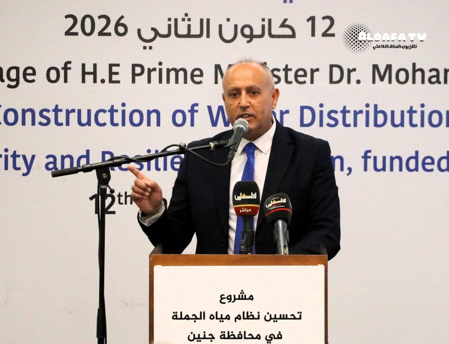 عبر رئيس الوزراء الدكتور محمد مصطفى عن شكره لكل من ساهم في تعزيز صمود المواطنين من خلال العمل على انجاز مشروع تحسين نظام مياه الجملة في محافظة جنين وانشاء شبكات توزيع المياه على مناطق شمال وشرق المحافظة الممول من البنك الدولي.