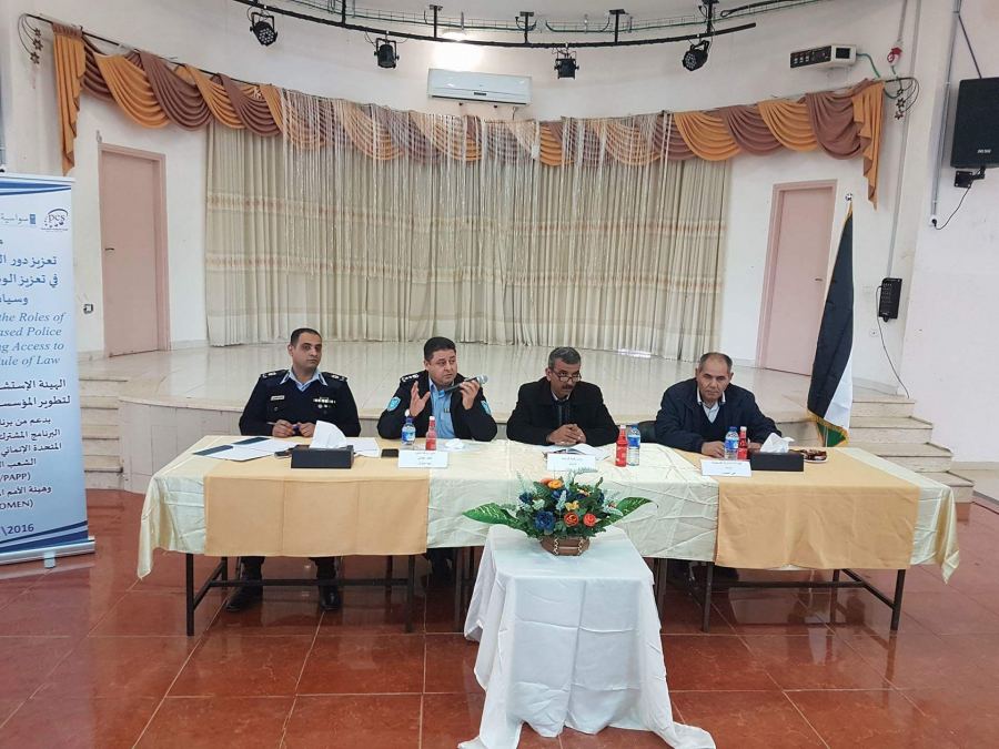 بعد ذلك قام مدير شرطة محافظة جنين العقيد حقوقي مهند صوان بالتأكيد على رسالة الشرطة المجتمعيه وهي رسالة شراكة منذ عام 2008 تهدف الى زيادة الصلة بين الشرطة و المواطن للحد من الجريمة و سيادة القانون في المجتمعات، تضمنت خلال تلك الفترة عدة لقاءات توعوية في الجامعات و المدارس نظرا لان فئة الشباب هي الاكثر تاثيرا في المجتمع و الاكثر استهدافا من عصابات تجار المخدرات،و الاكثر انجرافا خلف تهور السياقة .