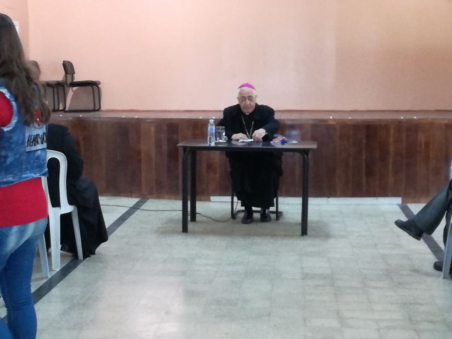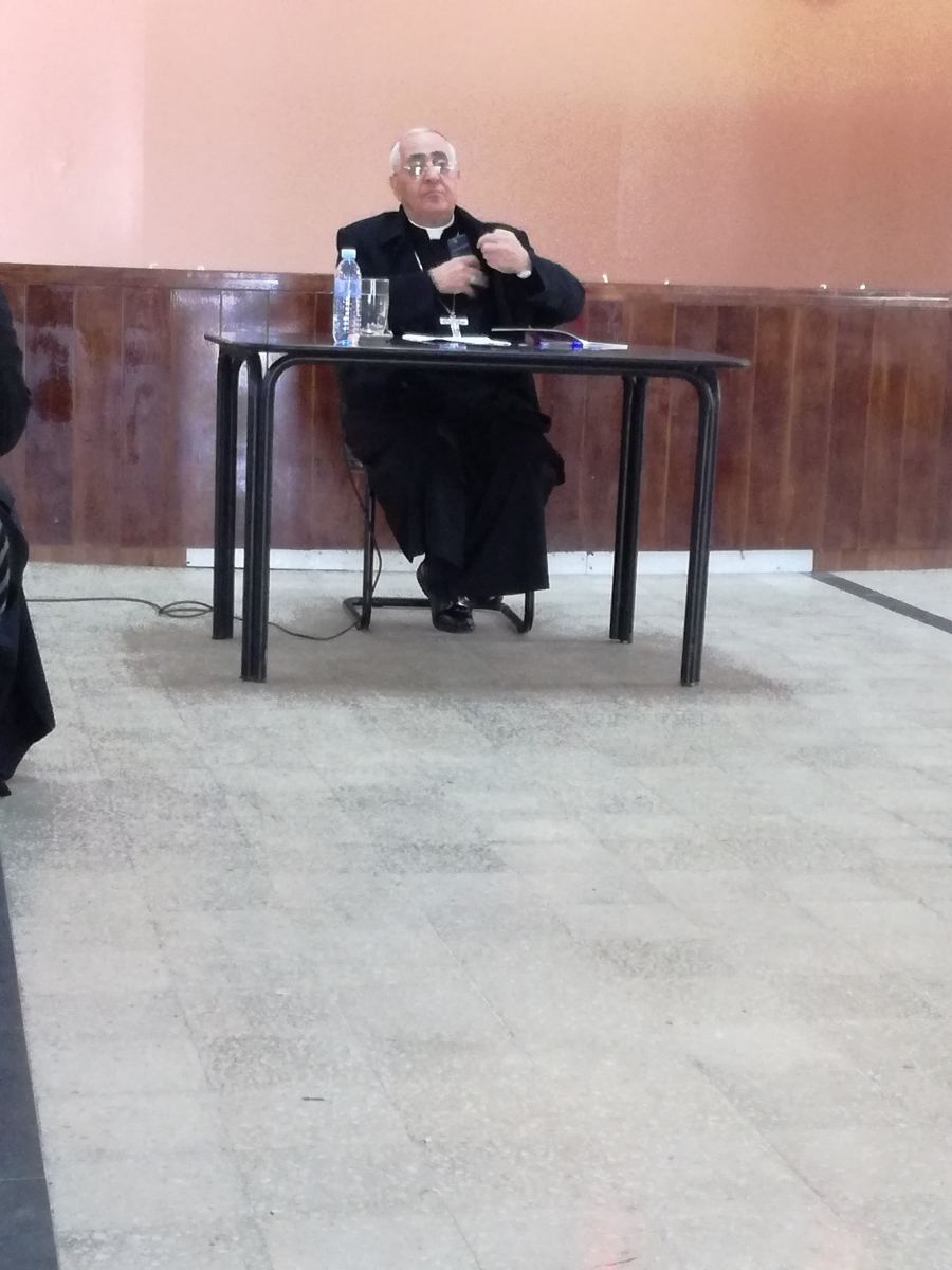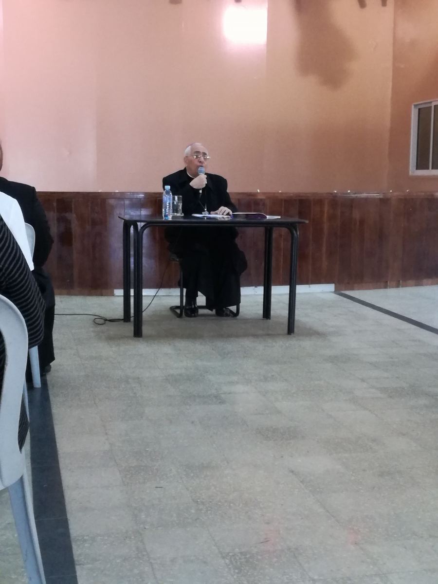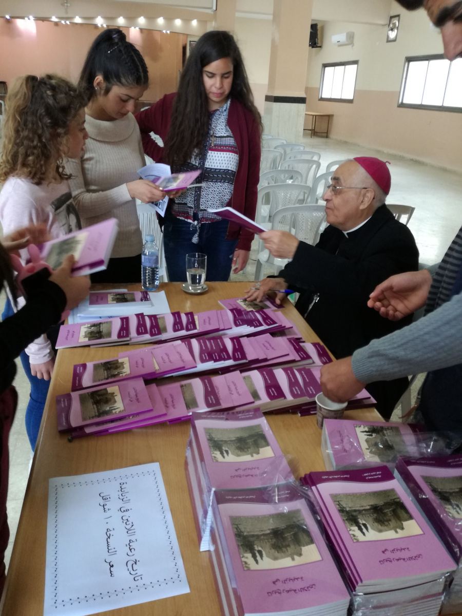 وافتتح الحفل الاب ابراهيم نينو كاهن رعية اللاتين في البلدة و مدير المدرسة البطريركية فيها بكلمة الشكر لمجهود سيادة المطران في اطلاعنا على تاريخ قد يجهله الكثيرين منا, و بترحيبه بالحضور .