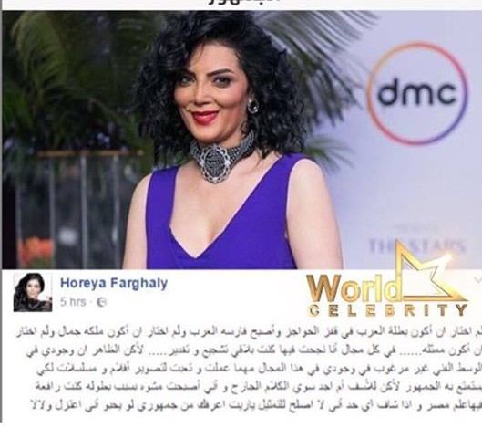 وعبر صفحتا الخاصة، كتبت حورية: "لم اختر أن أكون بطلة العرب في قفز الحواجز وأصبح فارسة العرب ولَم اختر أن أكون ملكة جمال ولَم اختار أن أكون ممثلة في كل مجال أنا نجحت فيه كنت بلاقي تشجيع وتقدير، لكن الظاهر أن وجودي في الوسط الفني غير مرغوب فيه مهما عملت".