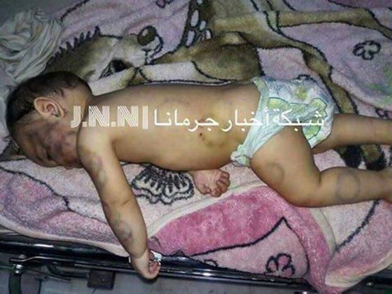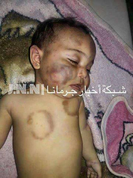 تضيف الشبكة: "عند الوصول إلى المنزل كان المشهد مروعاً.. كدمات وآثار عض تملأ جسد الرضيعة – بعدها تم نقل الرضيعة إلى مستشفى الراضي بجرمانا ليتضح أنها فارقت الحياة جراء ما تعرضت له من وحشية. على الفور تم استدعاء قوى الأمن الداخلي في مركز جرمانا، وكذلك رئيس النيابة الذي تولى استجواب الجاني الموقوف حالياً وزوجته على ذمة التحقيق.