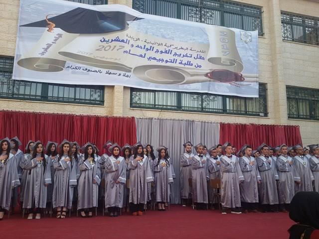 ومن ثم فقد سلم راعي الحفل ونائب محافظ جنين ورئيس بلدية الزبابدة ومدير المدرسة الشهادات للخريجين وعددهم خمسين خريجا وخريجة في الفرعين العلمي والادبي وهم: