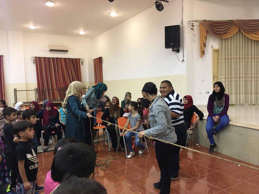 وتابعت بعدها فقرات الأمسية والتي تخللها العديد من الفقرات الترفيهية الخاصة بالأطفال، منها الرقص والغناء وعرض ( فرقة شمس) المسرحي الهادف للاطفال والذي رسم البسمة على وجوههم ، كما كان للنساء دور ونصيب في هذه الأمسية التي تخللتها مشاركتهن في نشاطات ومسابقات متنوعة.