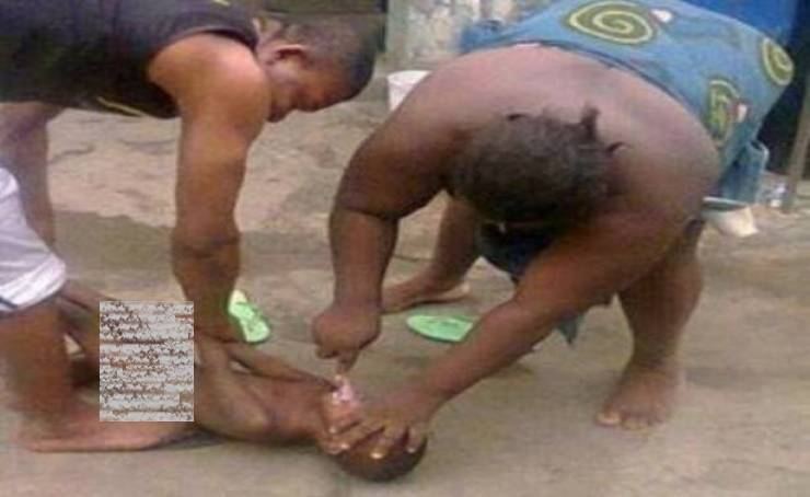 يتخيل الشخص الذي يشاهد هذه الصورة للوهلة الاولى بأن هذه المرأة قاسية، وتحاول قطع عنق الصبي.
