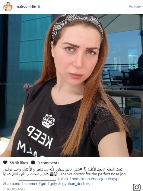 عبر حسابها الرسمي على Instagram، أعلنت مي عز الدين عن خضوعها لعملية تجميل.