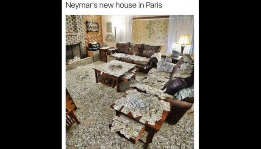 بدأ غضب جماهير برشلونة وسخطهم على النجم البرازيلي نيمار يتجلّى من خلال الصور المنتشرة على وسائل التواصل الاجتماعي، والتي تمّ تعديلها من خلال برامج الفوتوشوب لإظهار نيمار بمظهر المحبّ للمال.