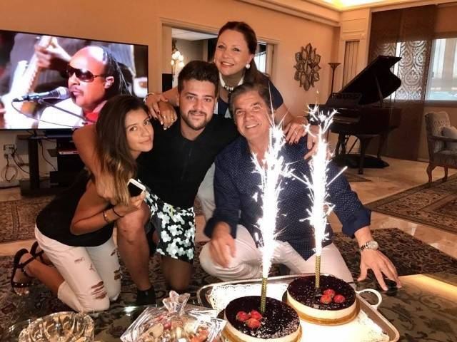 وقد ظهرت في الصورة إلى جانبه زوجته ملكة جمال الكون السابقة جورجينا رزق وابنته نورهان.