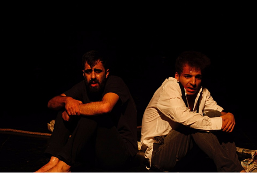 كانت هذه هي صورة المشهد الذي رسم على خشبة مسرح الحرية في مخيم جنين، أمس الأحد 13 آب 2017، في العرض المسرحي "على شفا حفرة" لفرقة رسائل للفن المسرحي من نابلس، من إخراج عدنان البوبلي، وأداء الممثلين: نور دولة، ومعتصم أبو الحسن.