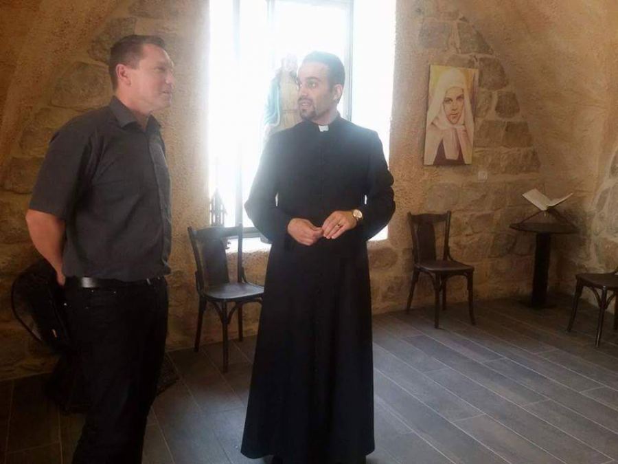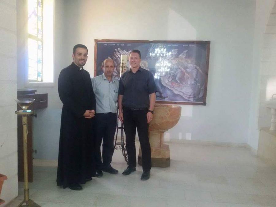 وكان له لقاءا مطولا مع الأب إبراهيم نينو مدير مدرسة البطريركية اللاتينية في الزبابدة حول زيارة الوفد الطلابي الألماني في شهر تشرين الثاني القادم ضمن النشاطات الطلابية والزيارات المتبادلة بين المدرسة ومدارس مدينة بيليفيلد وضعوا خلال اللمسات الأخيرة على برنامج الزيارة إضافة إلى زيارته للمناطق الأثرية في منطقة دير اللاتين من لوحات الفسيفساء والكنيسة القديمة إضافة إلى اطلاعه على أعمال الترميم في مباني دير اللاتين.