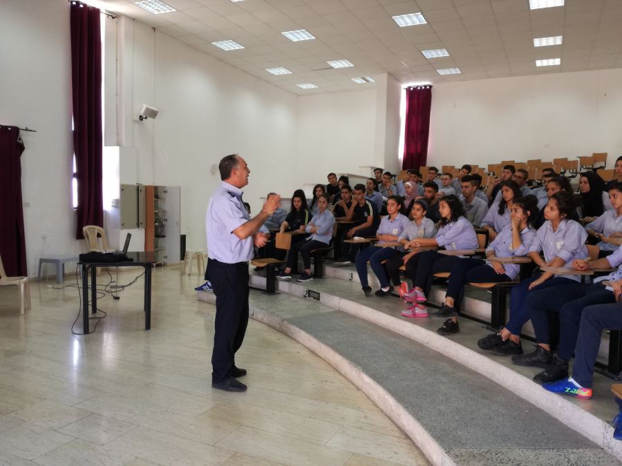 والقى المحاضرة التي استهدفت الصف الحادي عشر بفرعيه العلمي و الادبي النقيب اياد ابو الرب، والذي قام بشرح مفصل عن قوانين السير، المخالفات، و كيفية التعامل على الطرق سواء من السائقين او المشاة ، و من هنا قام النقيب بالاستشهاد بعدد من حوادث السير التي تعرض لها المواطنين وذلك للتنبيه على العوامل التي تزيد من احتماليه وقوع الحادث مثل : استعمال الهاتف اثناء القيادة او قطع الشارع، السير في وسط الطرقات، السرعه الزائده، التجاوز الخاطئ، عدم وضع حزام الامان... وغيرها