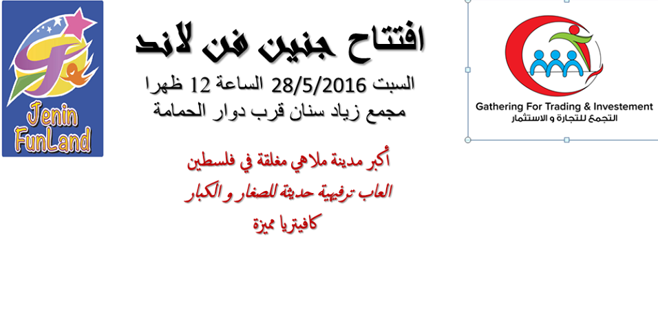 لاضخم مدينة ملاهي مغلقة في فلسطين يوم السبت 28/5/2016 الساعة 12 ظهر