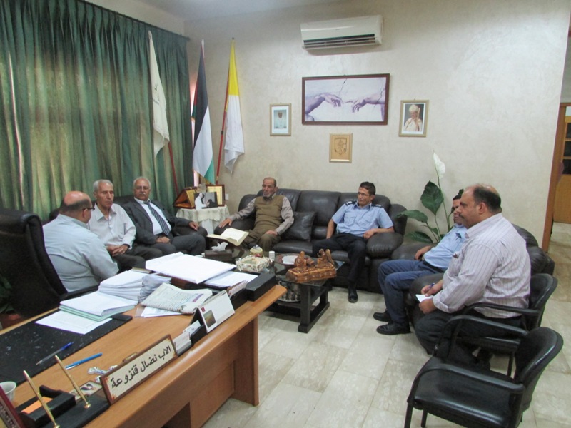 وقد رحب الأب نضال قنزوعة مدير مدرسة البطريركية اللاتينية بالوفد شاكرا لهم اهتمامهم وزيارتهم ومقدما شرحا عن التسهيلات المقدمة من قبل المدرسة لقاعات الثانوية العامة.